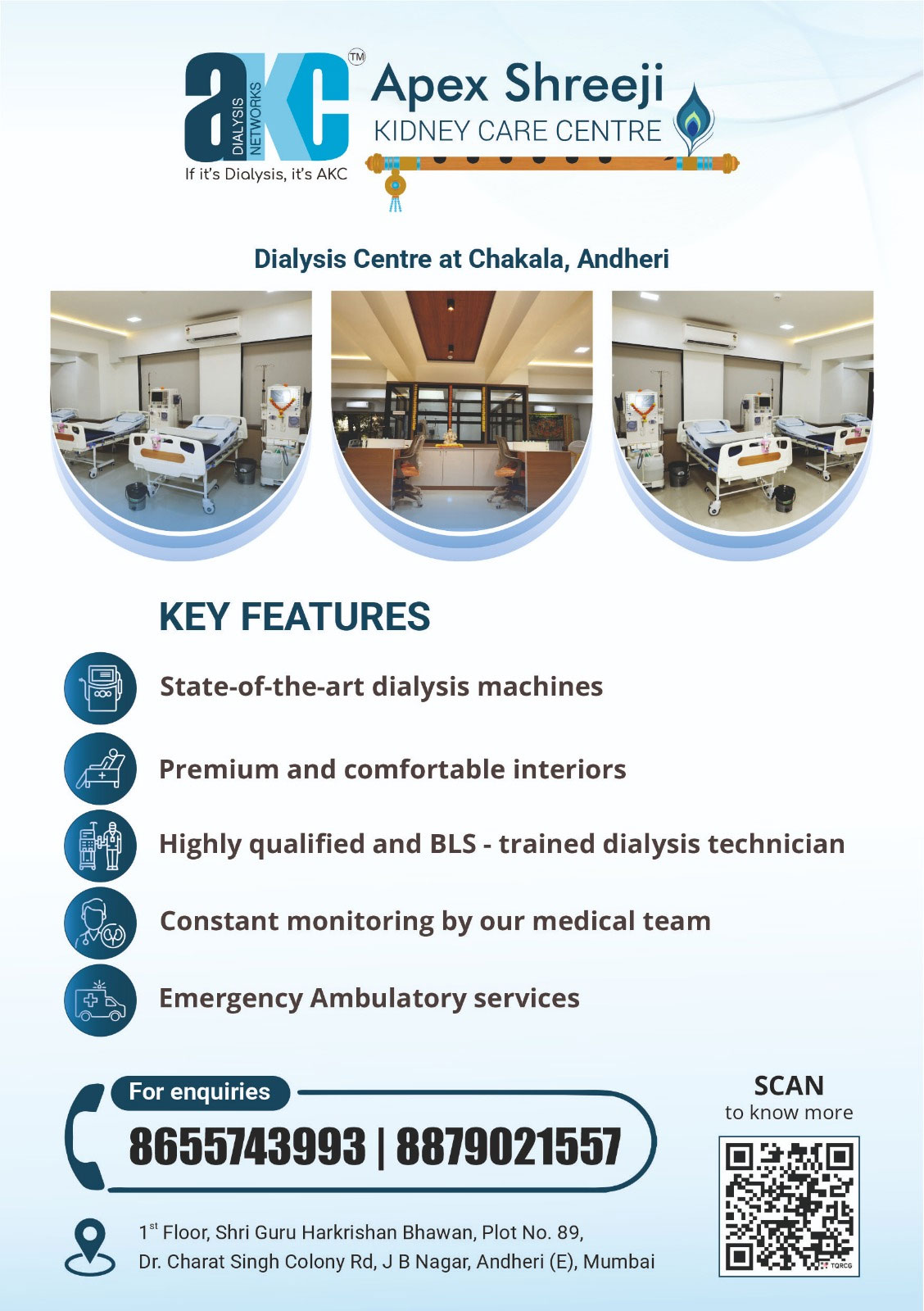 We are committed to providing world-class dialysis care in a safe, comfortable, and patient-friendly environment. Located at Chakala, Andheri (E), Mumbai, our centre is equipped with modern dialysis facilities to ensure the best possible outcomes for our patients.